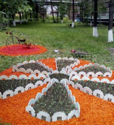 Декоративная щепа регулярно используется в ландшафтном дизайне для декорирования и мульчирования садов и участков. Сама щепа окрашена красителями на натуральной основе, которые не смываются водой и устойчивы к выгоранию на солнце. Сам цвет получается ярким и насыщенным. Средний срок службы декоративной щепы составлет приблизительно 2-3 года. После укладки на землю, со временем нижние слои щепы начинают понемногу перегнивать, улучшая состав почвы, но при этом свои декоративные свойства она сохраняет на протяжении всего срока службы. Сама же основа - это щепки хвойных пород деревьев фракции от 2 до 4 сантиметров. Чтобы добиться максимального мульчирующего эффекта и 100% отсутствия сорняков, рекомендуем вам укладывать коричневую декоративную щепу на подложку из геотекстиля или листвиничного гумуса. Оптимальная толщина укладки составляет 3-4 сантиметра. Купить цветную коричневую щепу можно в мешках объемом 60 литров, цена зависит от количества - чем больше объем, тем ниже цена. 60 литрового мешка при указанной толщине засыпки хватает на 1 квадратный метр территории.